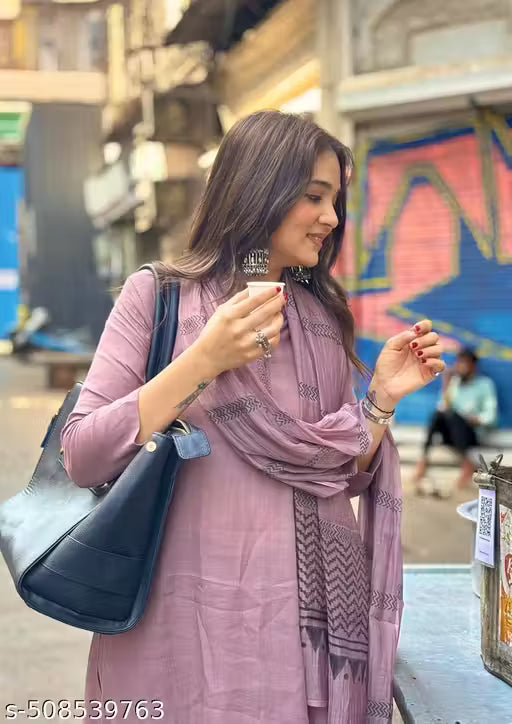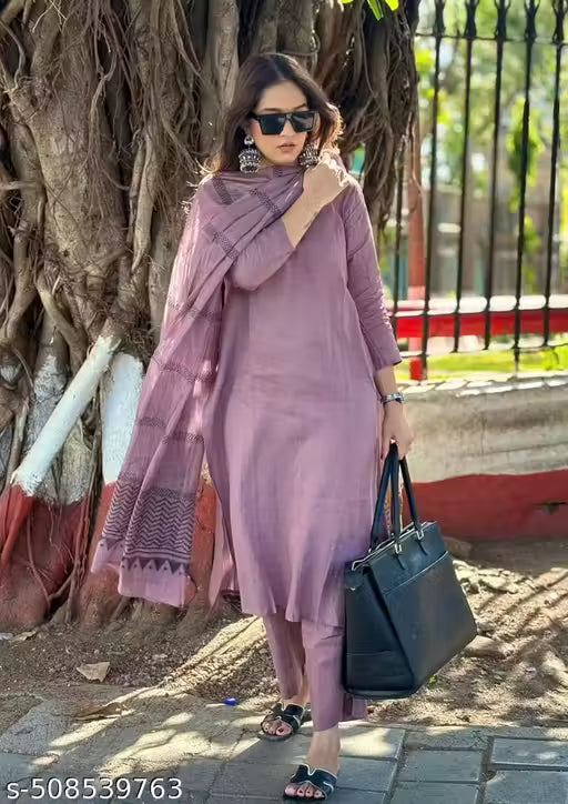 Womans Solid Plain Kurta Pant Set With Printed Dupatta For Girls And Womans